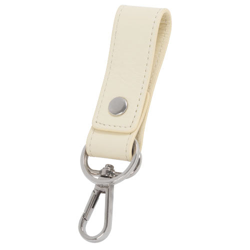 本革を使用したフック付きキーホルダーです。ボタン付きなのでバッグやベルト等に取り付けて使用することもできます。