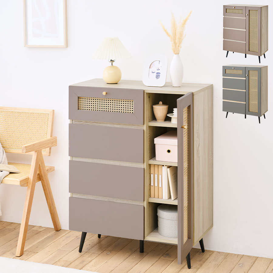 ラタン調のデザインを取り入れた大容量キャビネット。可動棚付きなのでお部屋まわりがスッキリ収納できます。