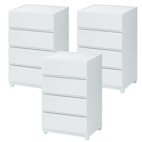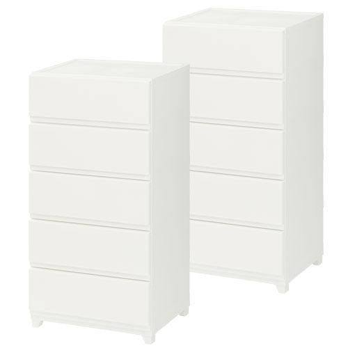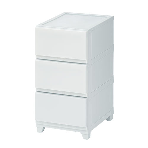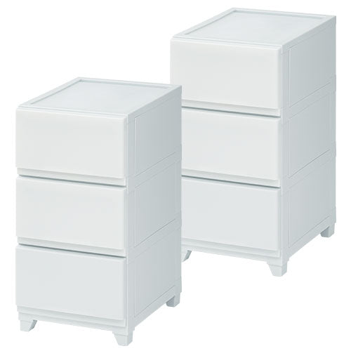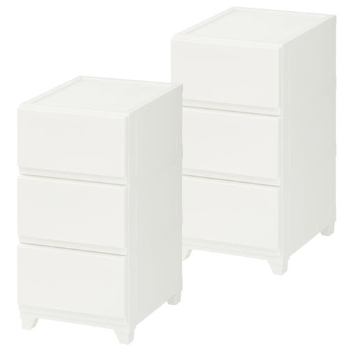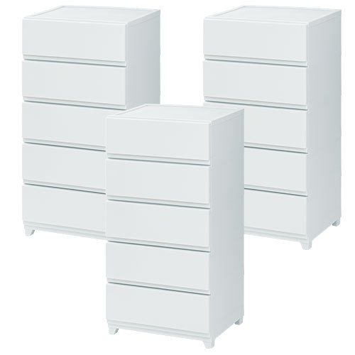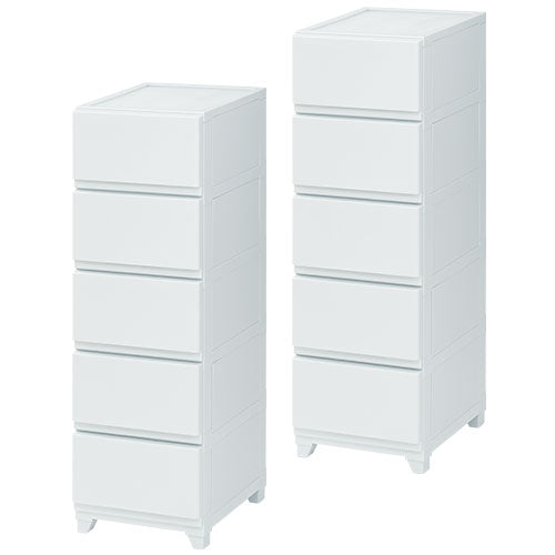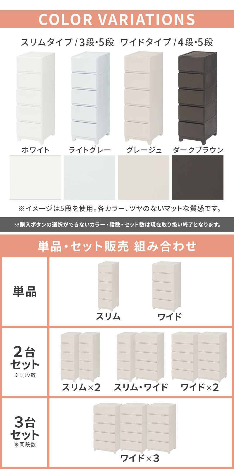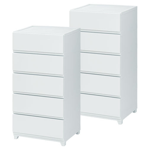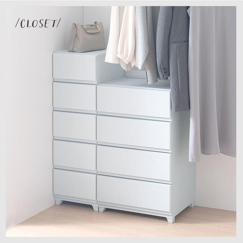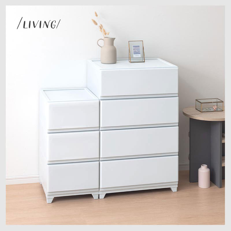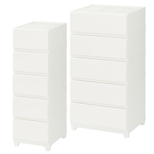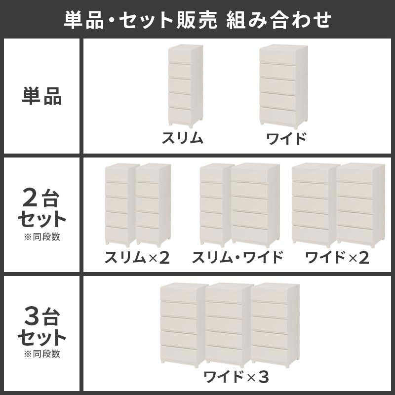 収納も自由自在な壁付き樹脂チェスト。省スペースに置けるスリムと、大容量のワイドの2タイプからお選びいただけます。