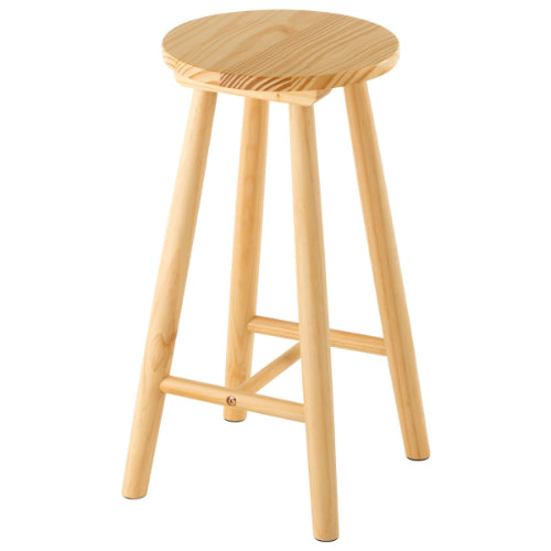 丸い座面と天然木の脚を組み合わせた、シンプルなデザインの木製スツールです。