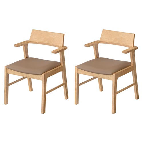 ハーフアームの天然木製ダイニングチェア。テーブルに引っ掛けられるので、お掃除ロボットにも対応しています。