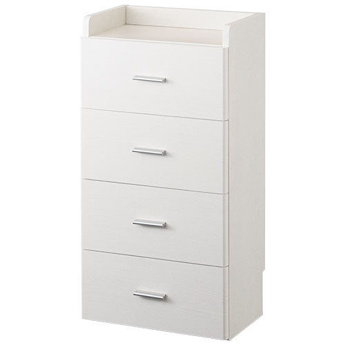 省スペースに収まる、引き出し4段のスリムチェスト。限られたスペースにも設置できるスリム設計。