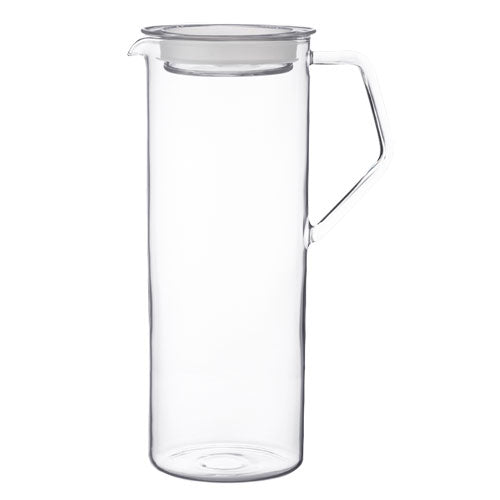 シンプルで美しい耐熱ガラス製のウォータージャグ。どんな空間にも溶け込むミニマルなデザイン。