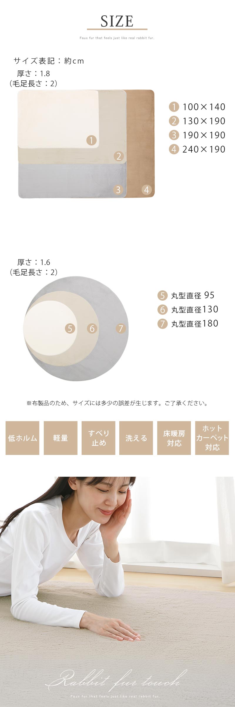■機能:手洗い可能、裏面滑り止め付き、床暖房・ホットカーペット対応