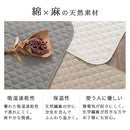 綿麻生地の敷パッド。保温性と優れた吸湿速乾性で蒸れにくく、一年中ご使用いただけます。