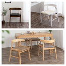 アーチ状の背もたれが美しい天然木製ダイニングチェア。テーブルに引っ掛けられるので、お掃除ロボットにも対応しています。
