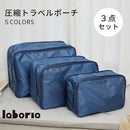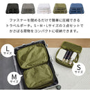 ファスナーを閉めるだけで簡単に圧縮できるトラベルポーチ。衣類などかさばる荷物を一つにまとめてコンパクトに収納できます。