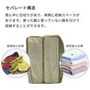 持ち運び時は圧縮でき、ホテルでは真ん中のファスナーをはずして厚いままで使う。