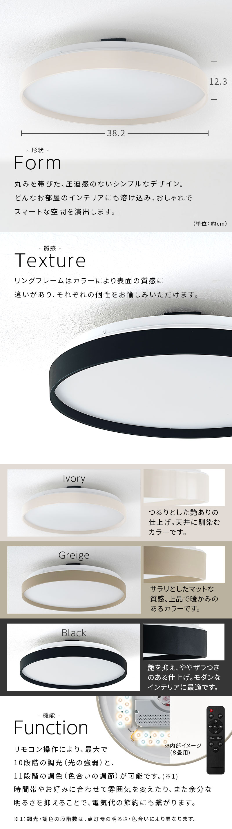 シーリング シーリングライト シーリングランプ シーリング照明 ライト ledシーリングライト ledシーリングランプ ledシーリング照明 ledシーリング ledライト ledランプ led照明 led照明器具 照明 天井ライト 天井照明 室内照明 天井 常夜灯 led常夜灯 豆電球 電気 照明器具 照明機器 電気器具 電灯 灯り リビングライト リビングランプ リビング照明 リビング照明器具 ダイニングライト ダイニングランプ ダイニング照明 天井ランプ 天井灯 天井直付灯 led天井照明 住宅照明 住宅用照明 住宅用led照明 天井直付型led 丸 型 丸型 丸い 丸形 円形 ラウンド 薄型 スリム フラット 約 直径 38cm led 一体型 内蔵 led一体型 led内蔵 6畳 8畳 3200lm 3200ルーメン 4000lm 4000ルーメン 明るい リモコン リモコン付き リモコン式 明るさ調節 明るさ調整 調光調色 調光 調色 昼白色 昼光色 電球色 暖色 白色 切り替え 演色性 ra80 以上 シェード スチール タイマー タイマー付き タイマー機能 チャンネル機能 メモリー機能 天井直付 天井直付け 直付け 天井付け 取り付け 簡単 取り付け簡単 配線器具 引掛シーリング 引掛けシーリング 丸型フル引掛シーリング フル引掛ローゼット 角型引掛シーリング 丸型引掛シーリング 引掛埋込ローゼット ハンガーなし ハンガー付き 対応 pse 天井の隙間が少ない ホコリが入りにくい 虫が入りにくい 長寿命 工事不要 家 戸建て 一戸建て マイホーム マンション 賃貸 リビング 居室 居間 洋室 キッチン ダイニング 台所 食卓 和室 寝室 ベッドルーム ワンルーム 一人暮らし ファミリー 新居 引っ越し 新生活 おしゃれ オシャレ お洒落 シンプル モダン 和モダン スタイリッシュ スッキリ スマート かわいい 可愛い 洋風 北欧 北欧風 韓国 韓国風 韓国インテリア インダストリアル インテリア アイボリー 白 ホワイト 系 グレージュ ベージュ グレー ブラック 黒 1年保証 一年保証 保証書付き