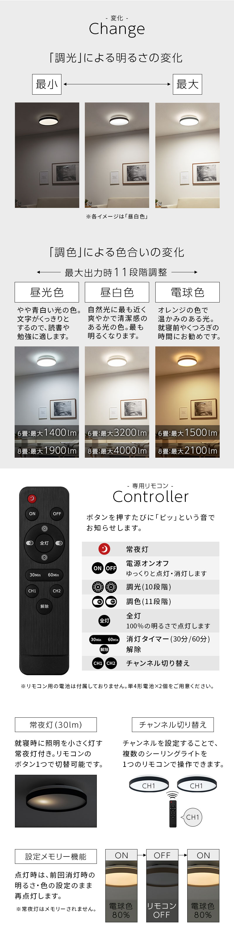 ■調光機能(10段階)・調色機能(11段階)