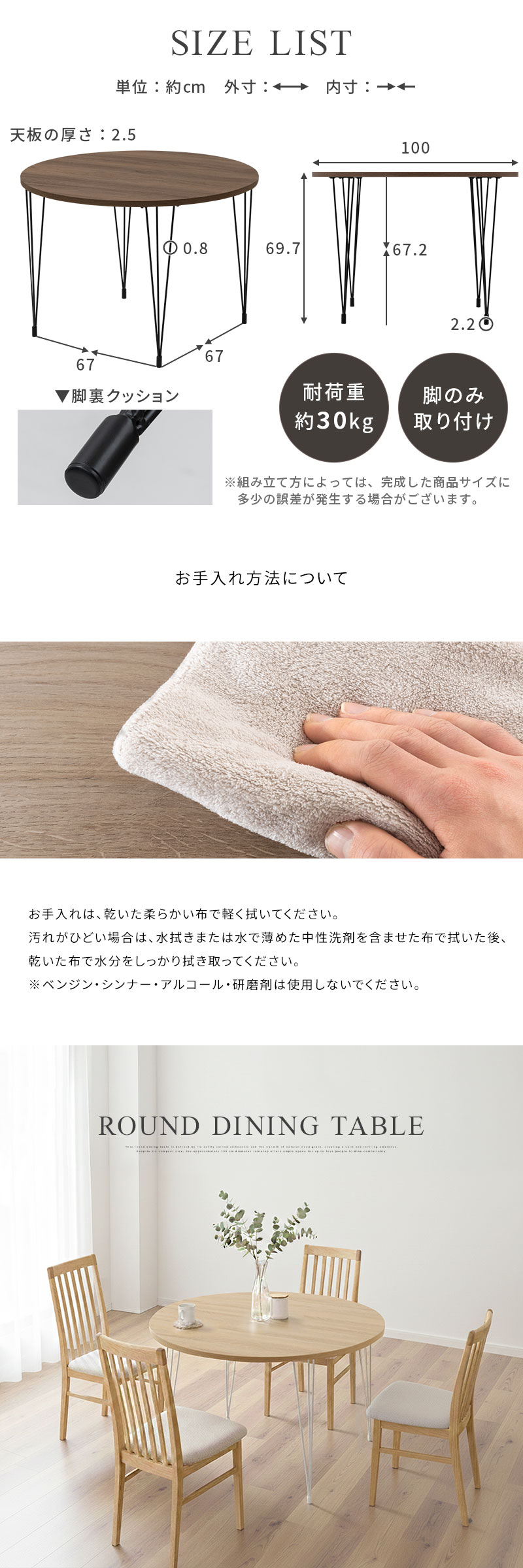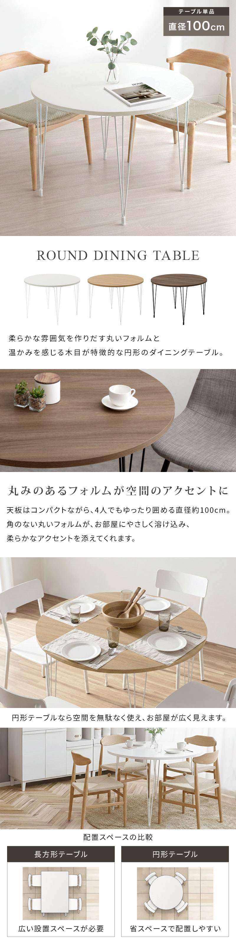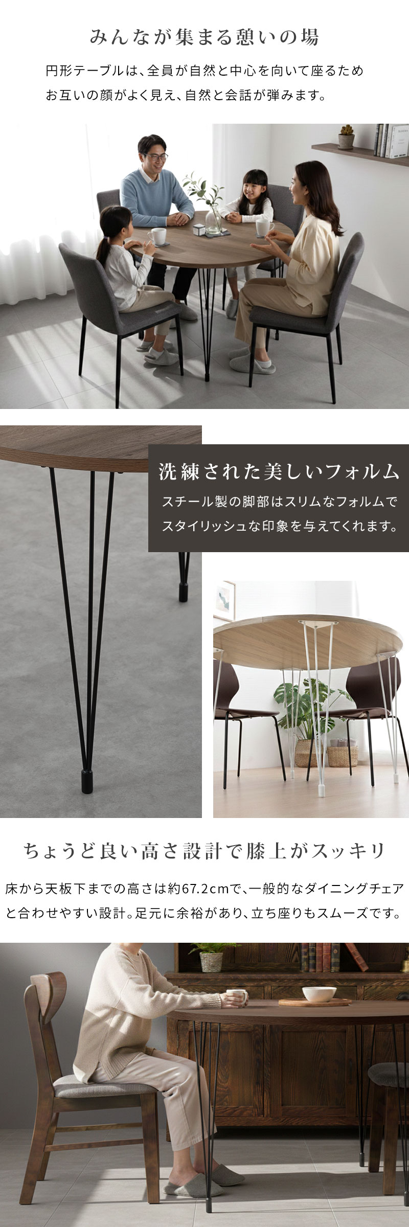ダイニングテーブル 円形 4人掛け 木製×スチール
