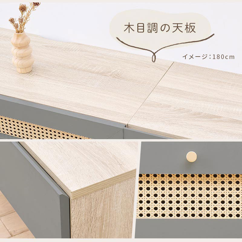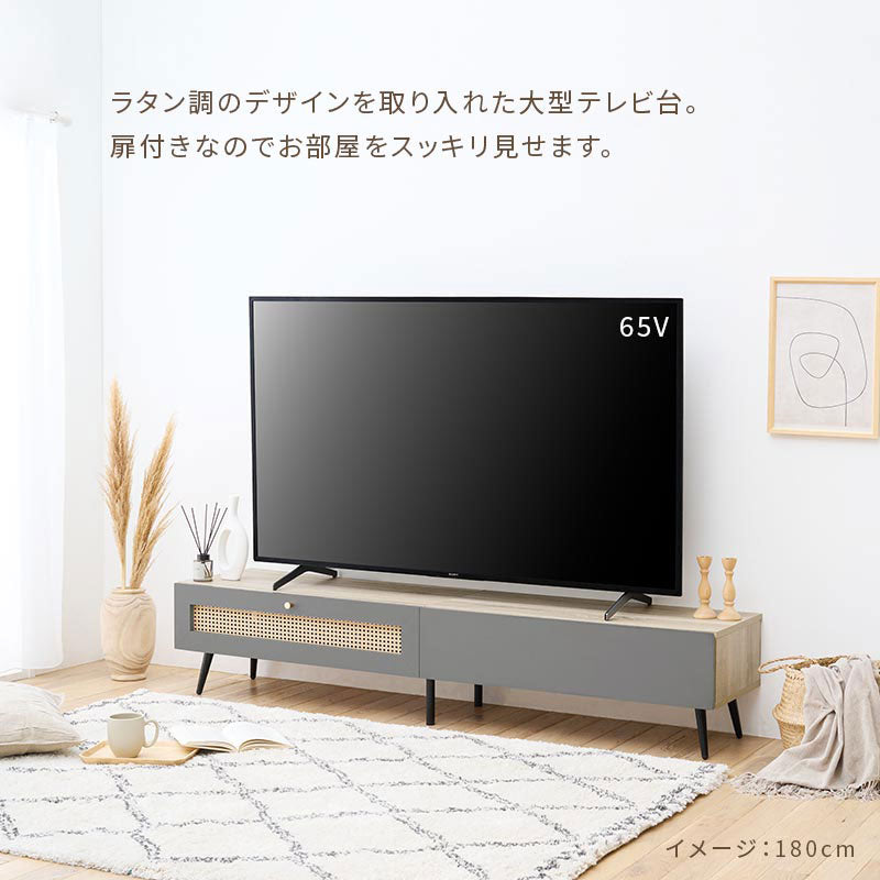 ラタン調のデザインを取り入れた大型テレビ台。扉付きなのでお部屋をスッキリ見せます。