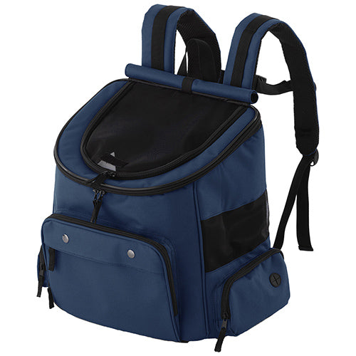 犬猫兼用、8kgまで対応のペット用ソフトキャリーバッグ、リュックタイプです。上開きなので、前で背負えばお顔が覗けて安心。