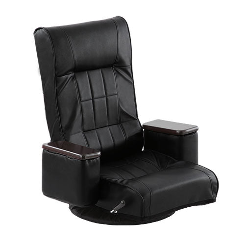 座ったまま方向転換ができる回転機能に加えレバーで角度を変えることができるリクライニング機能を搭載、さらに、うれしい肘置きには収納ボックス付き。