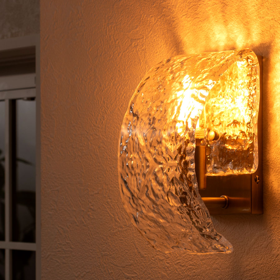 曲線が美しいアーム付きのブラケットライト。ガラスと真鍮メッキの組み合わせがアンティークな雰囲気にピッタリです。