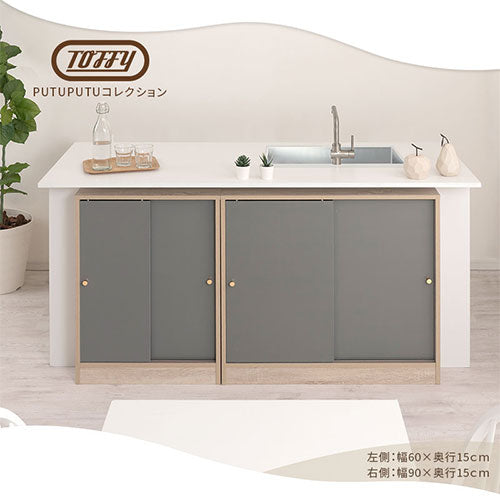 扉付き収納棚は、カウンター下などのデッドスペースに収まるスリムなサイズで、限られた空間でも扉付きの収納を実現させる引き戸仕様です。