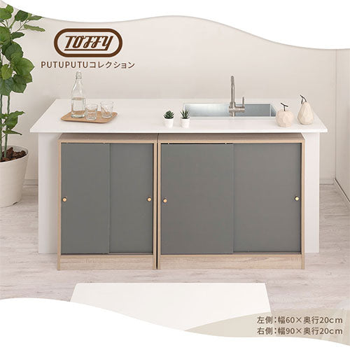 扉付き収納棚は、カウンター下などのデッドスペースに収まるスリムなサイズで、限られた空間でも扉付きの収納を実現させる引き戸仕様です。