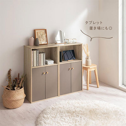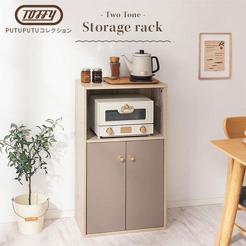 ツートンカラーがおしゃれな、扉付きの収納ラック。キッチンで食器棚に、リビングで電話台に、コンパクトなので使い方色々!