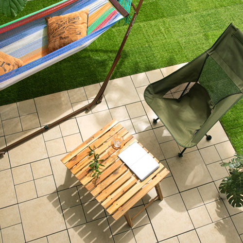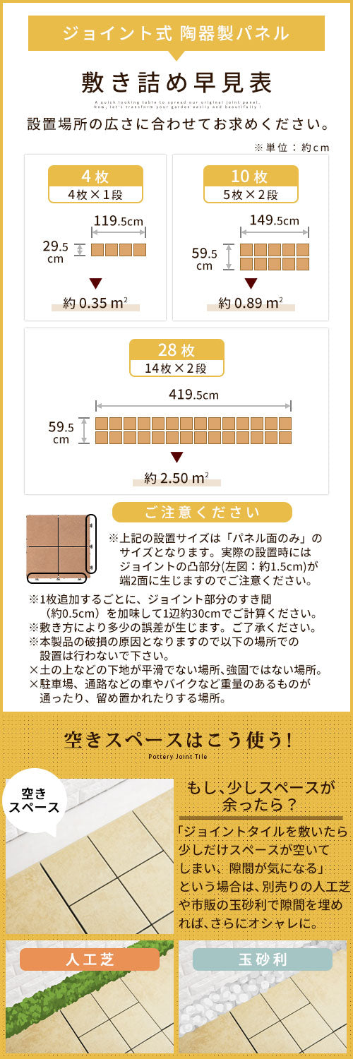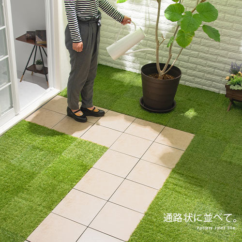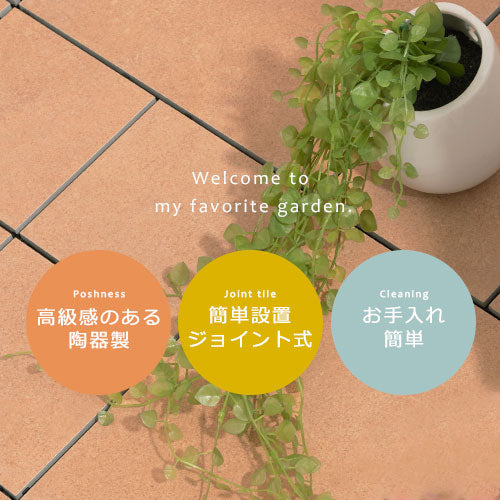 こちらのジョイントタイルは陶器を使用しており、敷くだけで素敵なお庭に変身させる事が出来ます。