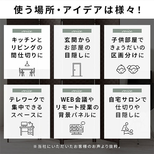 軽量で扱いやすいパーテーション。入り口や窓からの目隠しやお部屋の間仕切りとしてインテリアとして使い方はあなた次第。折り畳み出来るので必要なときにサッとだしたり、隙間にサッと収納したりと扱いやすくなっております。