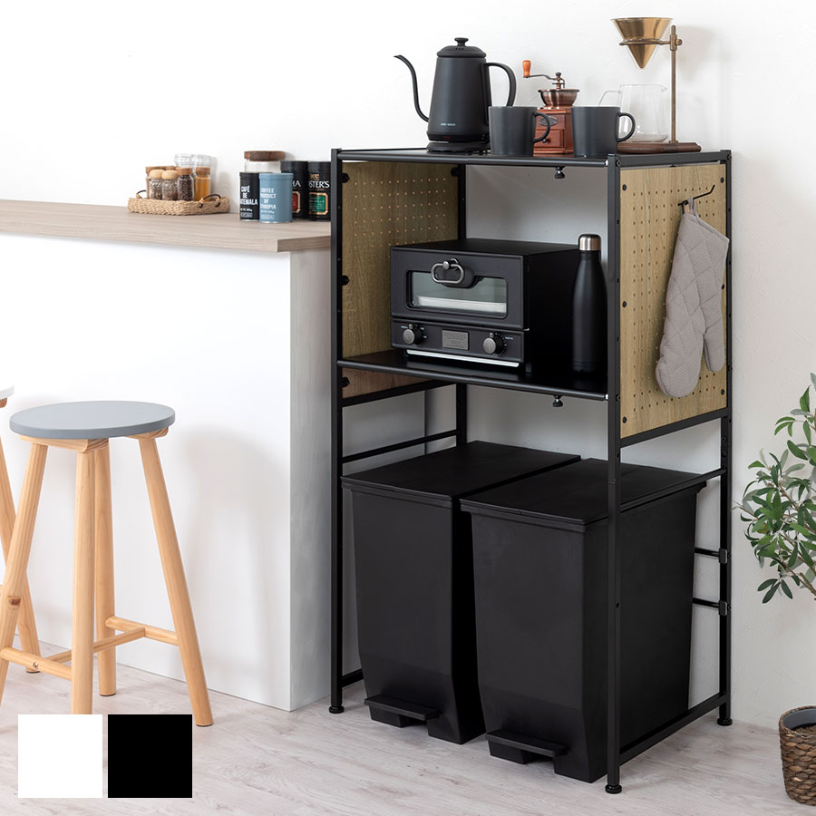 ゴミ箱上に収納をプラス。キッチン家電や調理器具などをすっきり整理できます。
