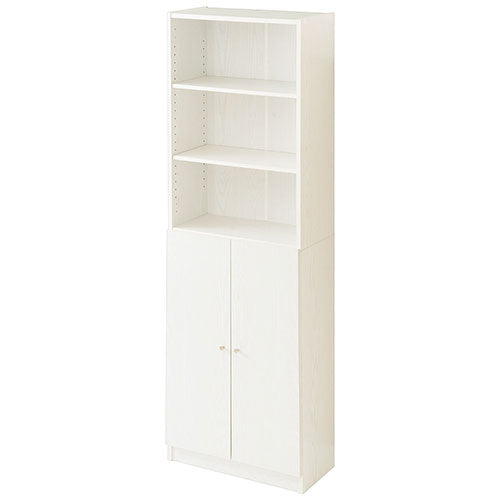 見せたい物はオープンスペースに、隠したいものは扉内に。用途に合わせて収納できる扉付き多目的ラック。