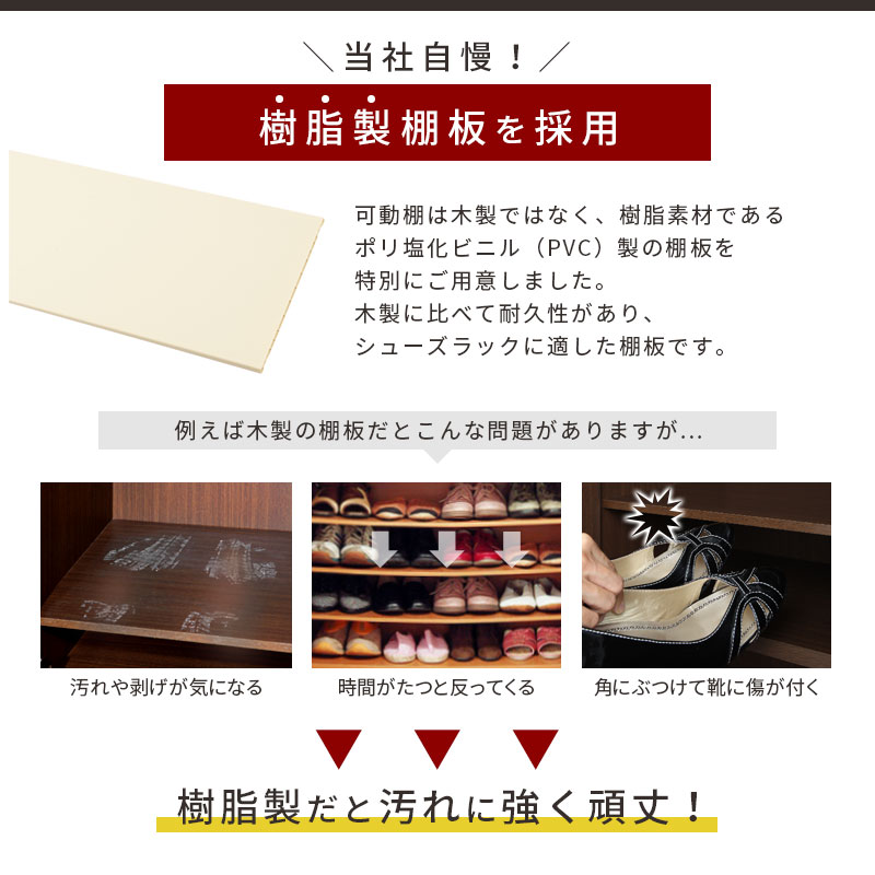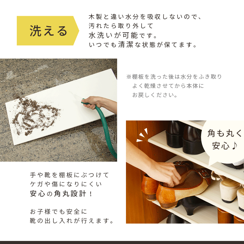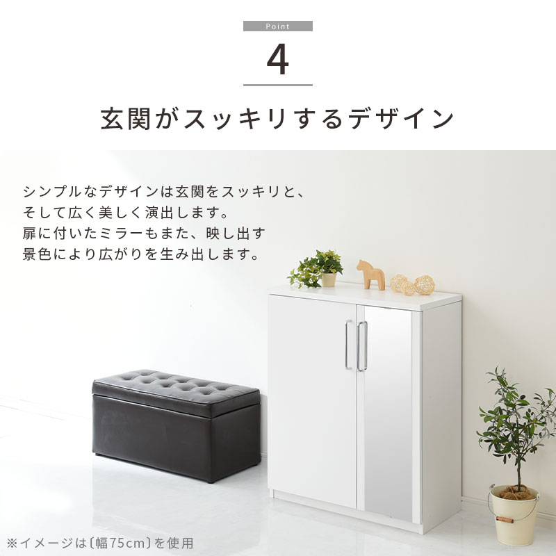 シンプルなデザインで、玄関をすっきり美しく見せるミラー付きのシューズラック。