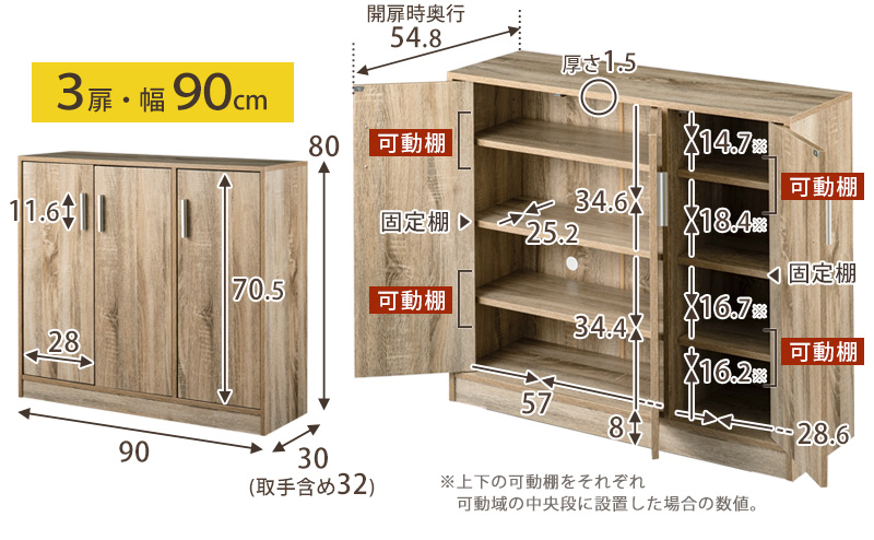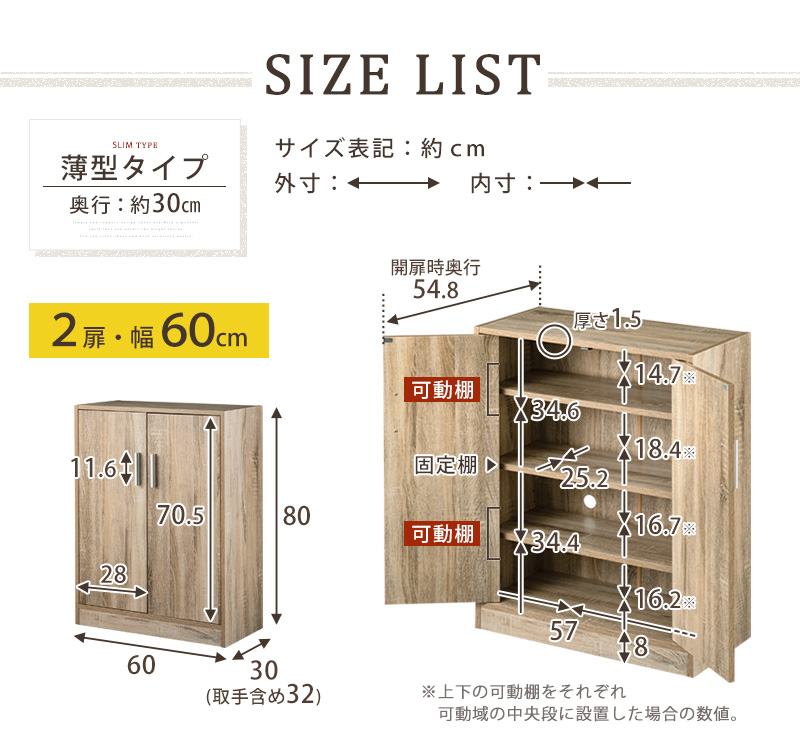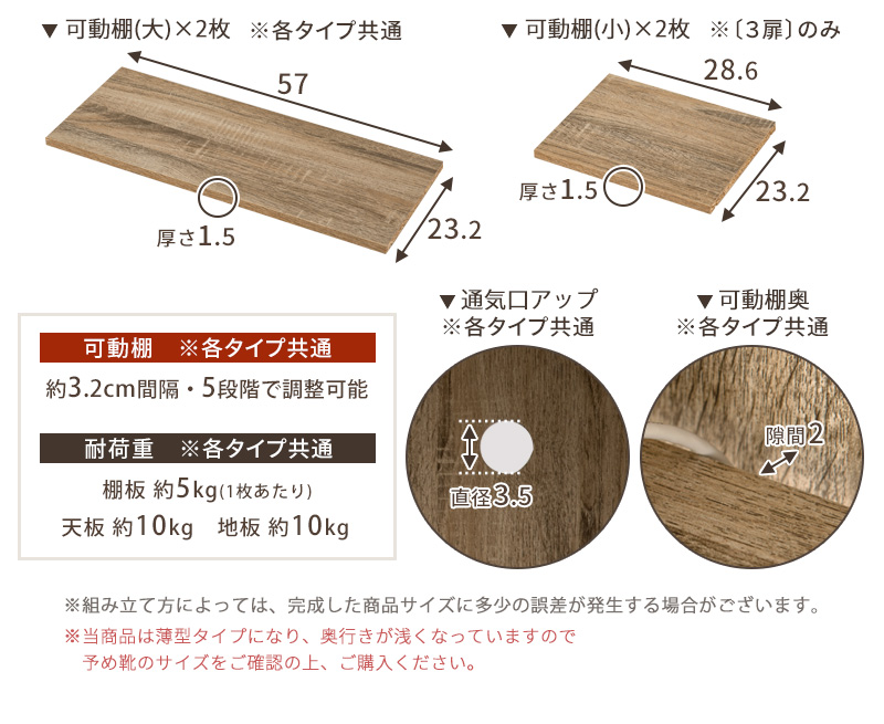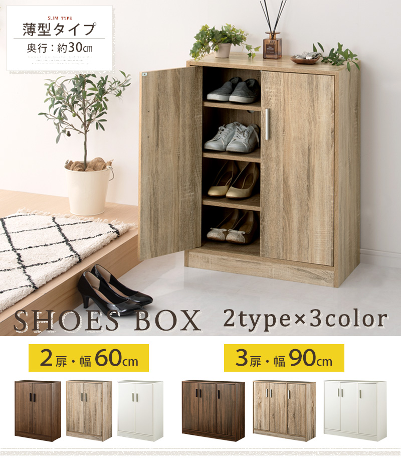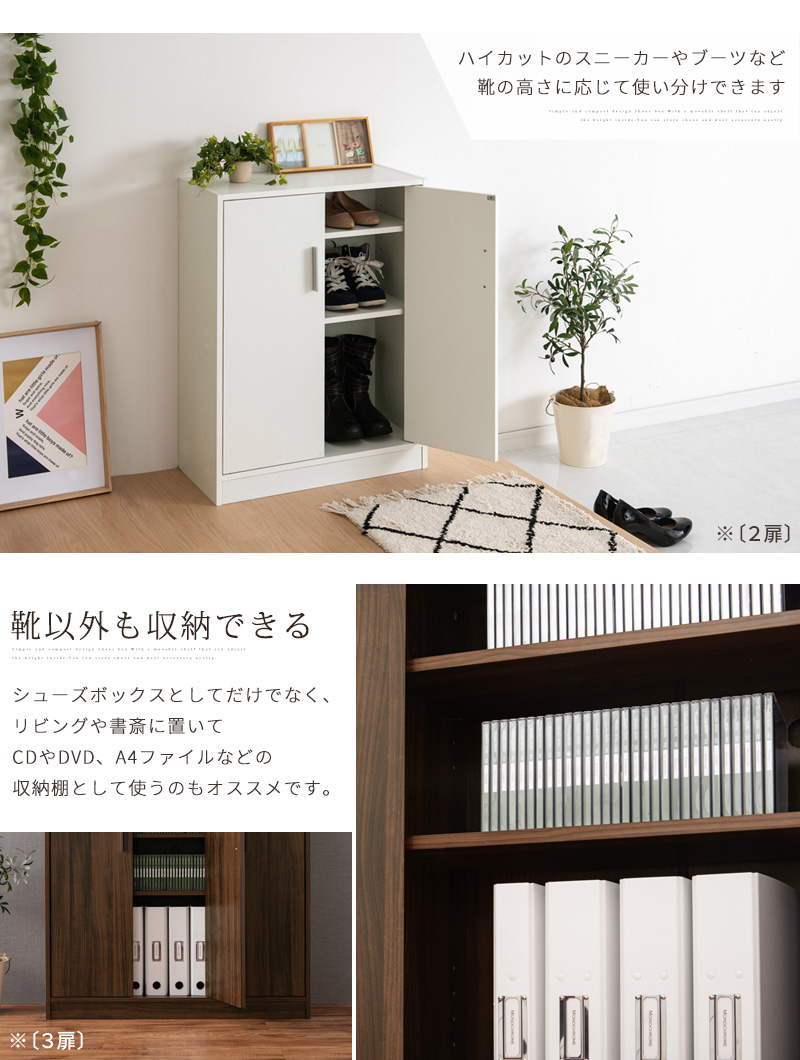 薄型シューズボックス〔2扉タイプ・3扉タイプ〕
