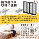 折りたたみ機能が付いたスチール製のメッシュベッド。風通しの良いメッシュで湿気から布団を守り、コンパクトに収納できる機能を併せ持ちました。