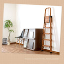 アルミ素材に木目調の転写を施したおしゃれな折りたたみ脚立。木目の優しい色合いがインテリアに馴染むデザインです。