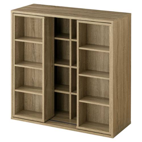 大容量収納を叶えるスライド式本棚〔幅90cm〕 棚が手前と奥の二列構成になっており、手前の棚は左右にスライドします。