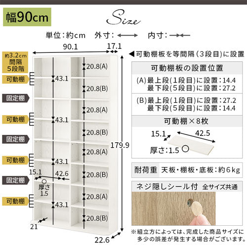 〔幅90cm〕天板、各棚板、底板:約6kg