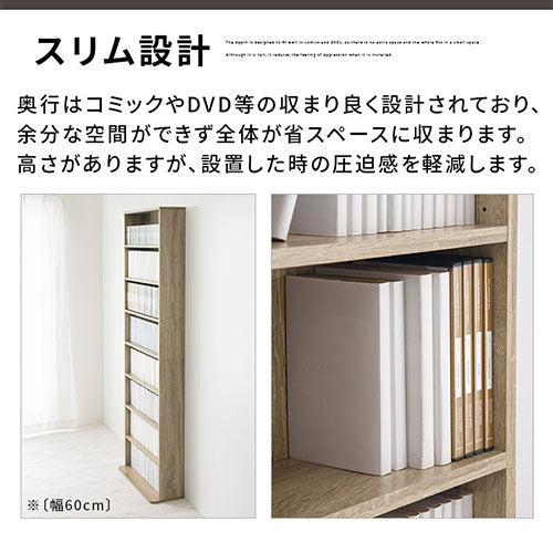 本棚 ハイタイプ 8段 可動棚 薄型 収納棚 木目調 ラック コミック 漫画 大容量
