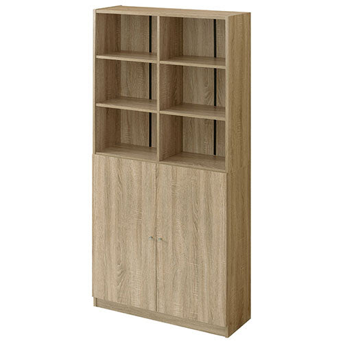 見せたい物はオープンスペースに、隠したいものは扉内に。用途に合わせて収納できる扉付き多目的ラック。
