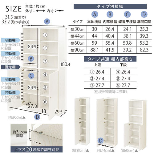 ■可動棚板(3.2cmピッチ/上下20ずつ計40穴)