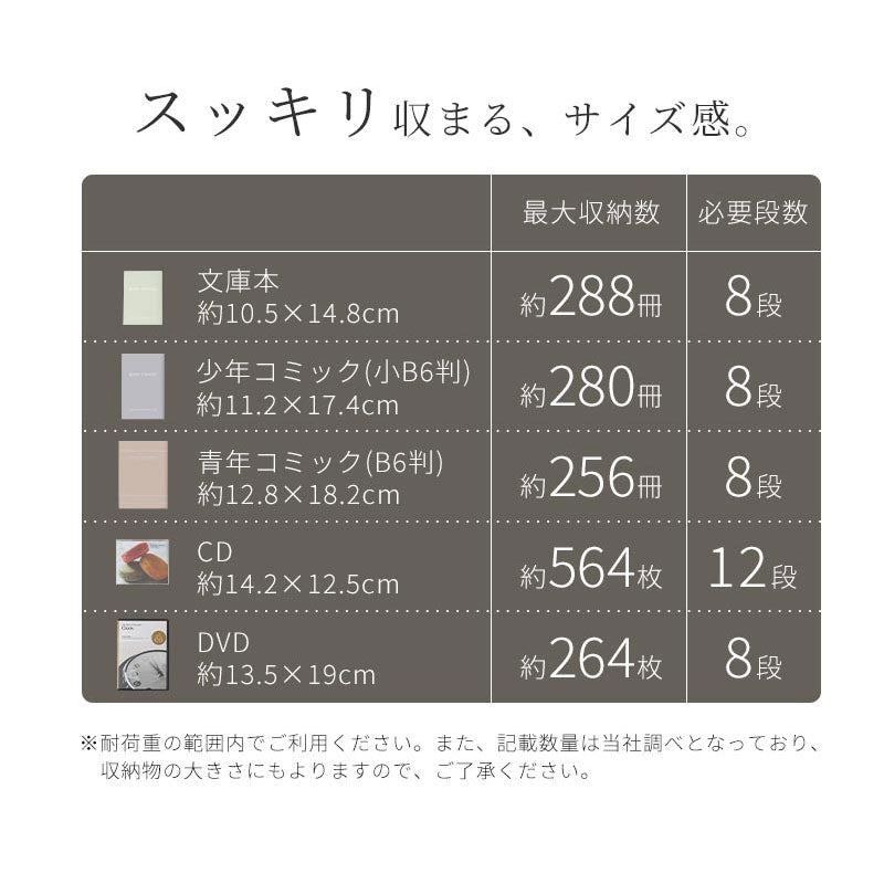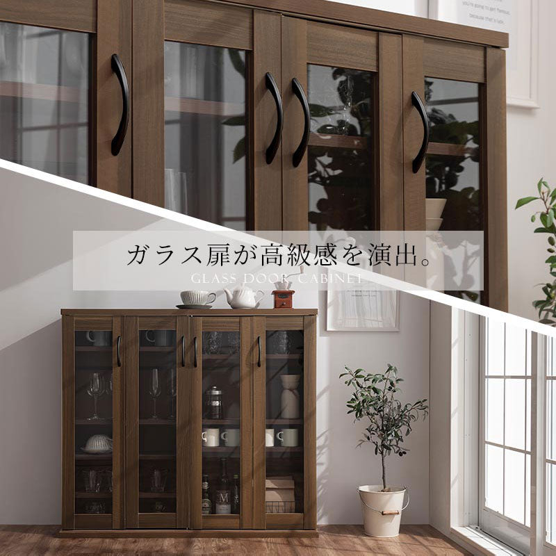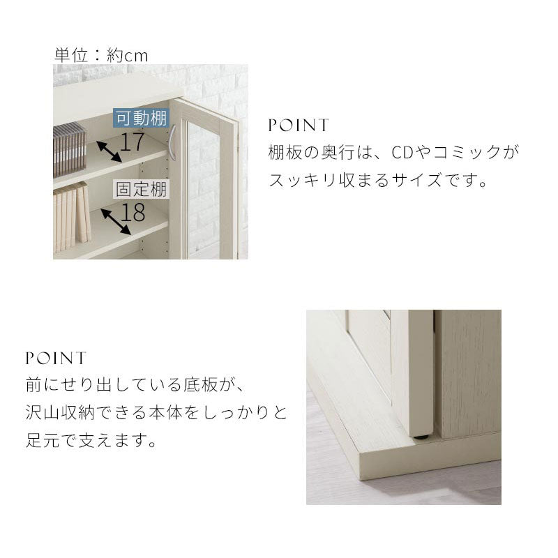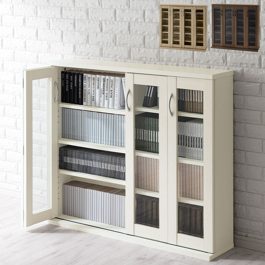 本やCD、DVDの大容量収納を実現したガラスキャビネット。背の高い棚に比べて目線が低くなり、圧迫感が軽減されるのでお部屋を広く見せてくれます。