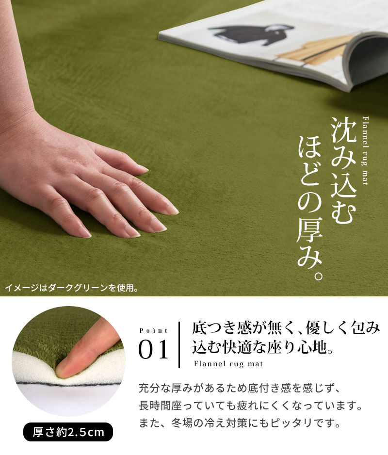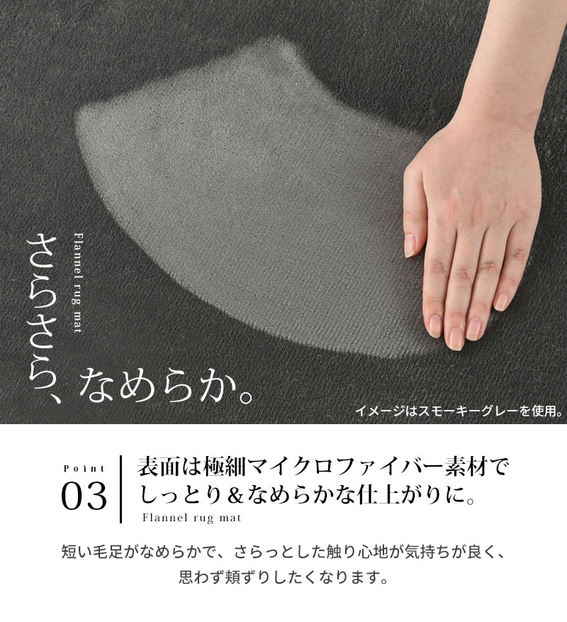 ふんわりモチモチとした肌ざわりの良い低反発ラグマット。