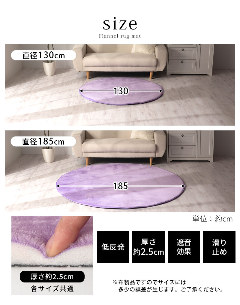 高級低反発ラグ〔丸型直径130cm〕