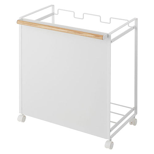ゴミ袋をスッキリ隠してくれるダストワゴン。3箇所に袋が掛けられるので資源ごみを分別しやすく、お手持ちの取っ手付きポリ袋を掛けてお使いいただけます。