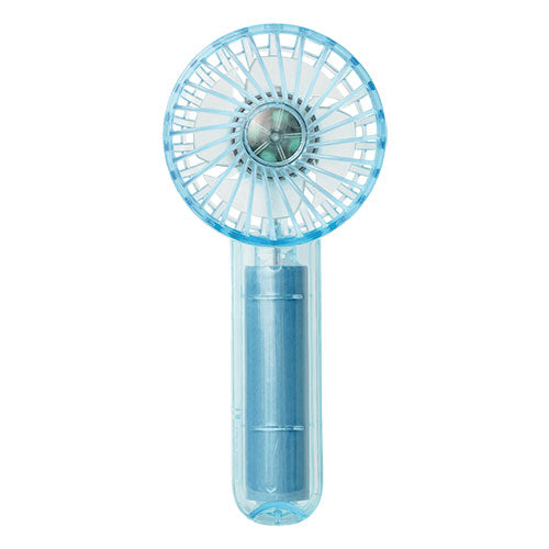 自動で変わる7色のLEDライトを搭載したハンディファン。光が映えるポップでスケルトンなデザインです。