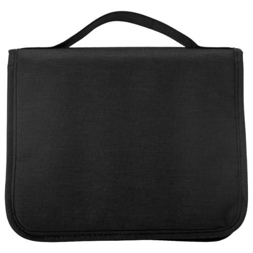 吊り下げて使えるトラベルポーチ。ポケットがたくさんあり、化粧品や洗面用具などコンパクトに収納できます。メイクポーチとして旅行や出張に持っていくのに便利です。