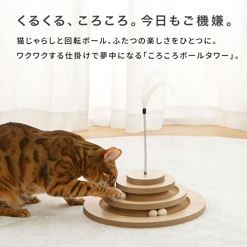 猫じゃらしと回転ボール、ふたつの楽しさをひとつに。ワクワクする仕掛けで夢中になる「ころころボールタワー」。