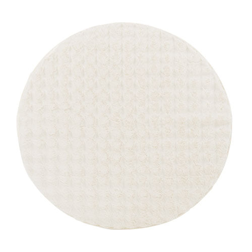 直径140cmのふわふわファー仕様の円形ラグマット。あたたかで快適な肌触りとモコモコした立体感がお部屋に高級感をプラス。