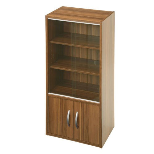 キッチンキャビネット ロータイプ 3段 可動棚 ガラス扉付き 食器棚 コンパクト 収納 木製