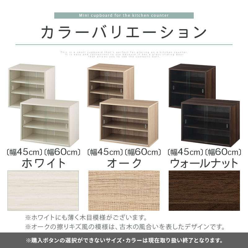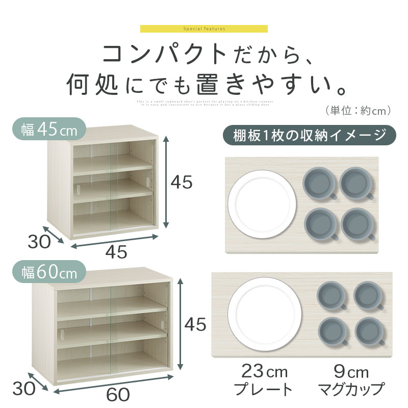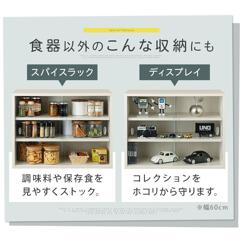食器棚 ミニ食器棚 卓上食器棚 上置き 上置き棚 上置き食器棚 カップボード ミニカップボード 戸棚 ガラス戸棚 カウンター上 カウンター上収納 カウンター上食器棚 カウンター上収納庫 カウンター上置き カウンター キッチンカウンター 上 ラック キッチンラック ミニラック 収納ラック キッチン収納 棚 食器ラック 台所ラック カウンターラック カウンター上ラック 収納台 キッチン棚収納 食器戸棚 食器収納棚 食器収納 便利収納 シェルフ キッチンシェルフ キッチンストレージ ストッカー 調味料収納 調味料棚 調味料ラック スパイスラック 食品庫 食料庫 収納棚 収納庫 茶箪笥 台所収納 ディスプレイラック コレクションケース コレクション棚 コレクション ガラス ディスプレイ フィギュア 飾る 飾り棚 本棚 ガラス本棚 ロー ロータイプ 卓上 机上 ミニ ミニタイプ 小さい コンパクト 小さめ 小さ目 小型 スリム 3段 三段 幅45 幅45cm 幅60 幅60cm 60cm 奥行30 奥行30cm 奥行き30cm 高さ45cm 45cm 木製 可動棚 ガラス扉 ガラス戸 透明 透明ガラス ガラス引き戸 引き戸 スライド スライド扉 強化ガラス 強化ガラス扉 メラミン メラミン樹脂 メラミン化粧 メラミン化粧板 メラミン天板 メラミン加工 防水 耐水 キズに強い 傷に強い 耐久性 丈夫 大容量 片面 お客様用 来客用 食器 コップ カップ マグカップ グラス コーヒーセット ティーセット お茶 お茶出し セット 湯飲み 湯のみ 湯呑み 急須 茶托 茶器 お皿 皿 大皿 ソーサー プレート 丼 カレー皿 カトラリー 入る 調味料 スパイス 小物 収納 キッチン ダイニング ダイニングキッチン パントリー 台所 出窓 一人暮らし 1人暮らし ひとり暮らし 独り暮らし 一人用 1人用 アパート マンション ワンルーム 学生 大学生 社会人 新生活 家具 インテリア 独立 独身 単身赴任 引越し 引っ越し 引越 会社 会社用 事務所 オフィス 職場 会議室 給湯室 休憩室 カフェ カフェコーナー ドリンクコーナー ミニキッチン おしゃれ オシャレ お洒落 御洒落 かわいい カワイイ 可愛い 北欧 モダン シンプル 洋風 和風 和モダン カフェ風 木目 木目調 木目入り 木柄柄 ウッド ウッド調 ホワイト ホワイトウッド 白 オーク ベージュ ナチュラル ウォールナット ウォルナット ブラウン ダークブラウン 茶色 完成品 組立不要 組み立て不要 サンキュークーポン対象 サンキュークーポン獲得 サンキュークーポン券 サンキュークーポン付 KKANRA945052 KKANRA945053 gekikagu bonkagu