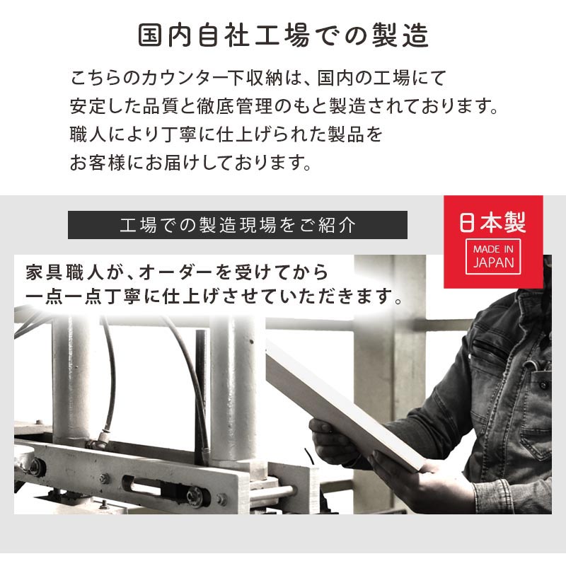 カウンター下などのデッドスペースに収まるスリムサイズで、幅広い空間で収納を実現させるオープン仕様です。