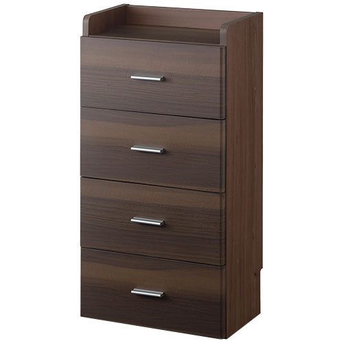 省スペースに収まる、引き出し4段のスリムチェスト。限られたスペースにも設置できるスリム設計。