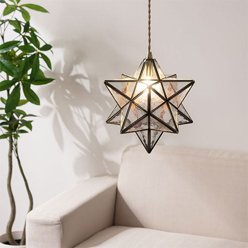 スチールとガラスを組み合わせた、アンティークな照明。星の形をしたガラスシェードが光を乱反射させながら、幻想的な空間を演出してくれます。