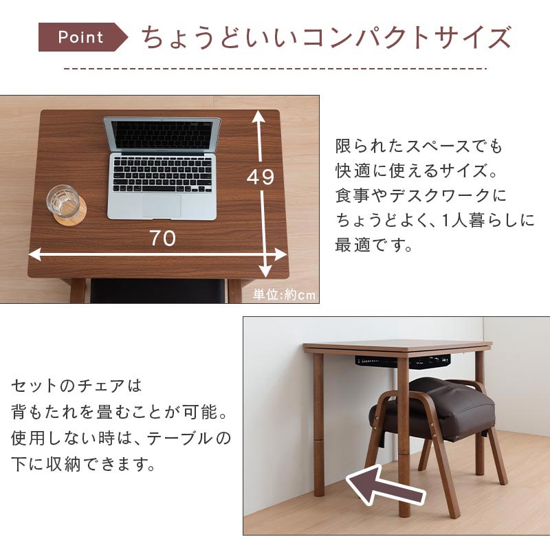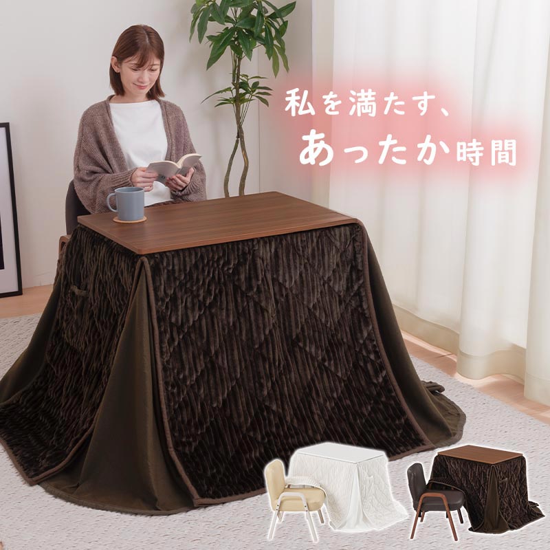 椅子と布団がセットになった、おしゃれな一人用こたつテーブル。継ぎ脚の高さ調整で、ハイタイプからロータイプのこたつに変身!